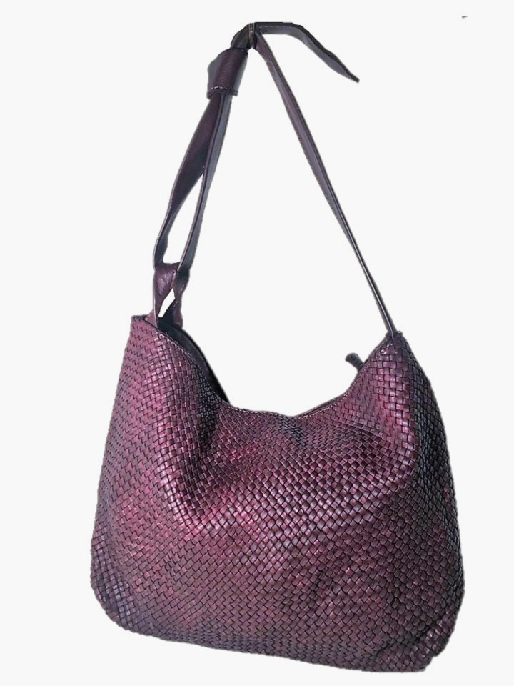MISURE: lato 37cm altezza 35cm profondità 11cmMATERIALE: vera pelle intrecciata a mano lavata e tinta in botteTIPO DI BORSA: a spalla